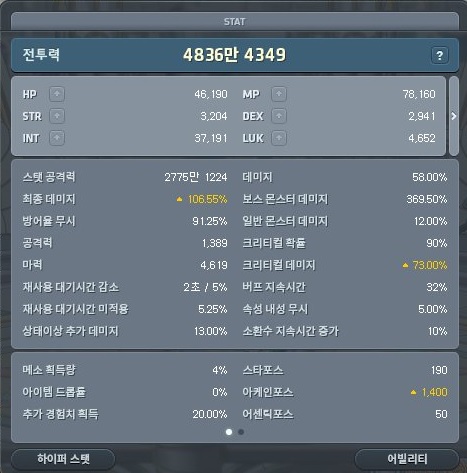 하이퍼버닝으로 5레벨이 올라가 255레벨이 되었습니다.