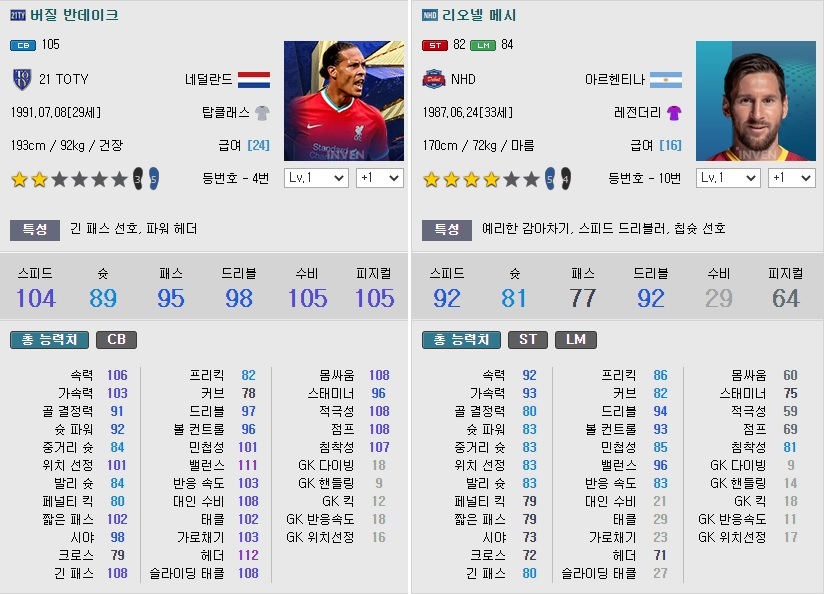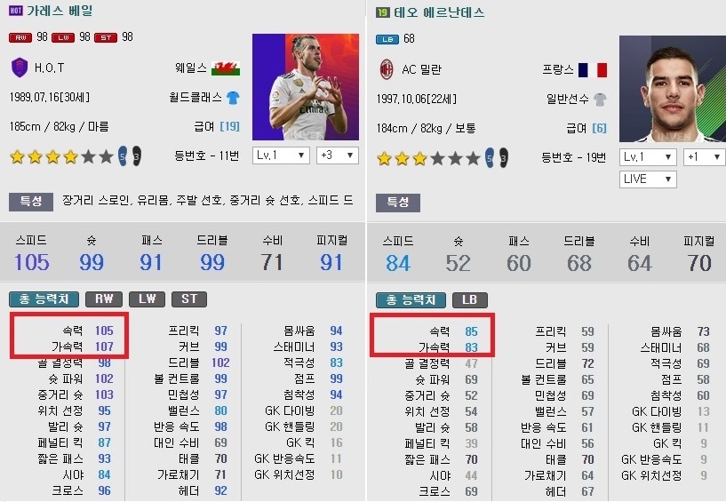 세부 스탯은 별로 차이가 없습니다. 선수를 고를 때 키, 몸무게, 체형, 발을 먼저 보는 이유입니다.