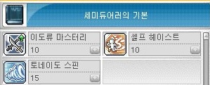 이도류 마스터리 10 - 셀프 헤이스트 10 - 토네이도 스핀 15