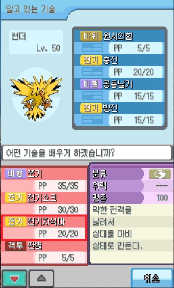 썬더는 스피드가 좋은 편이라 선공을 가져오기도 용이하고 전기자석파도 배웁니다.