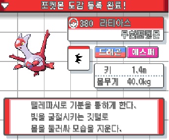 (하트골드 버전에서는 라티아스, 소울실버 버전에서는 라티오스입니다.)