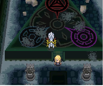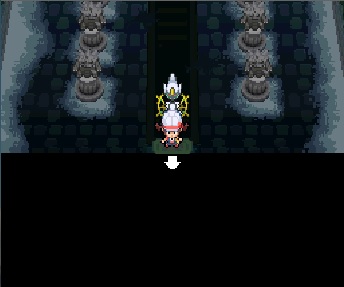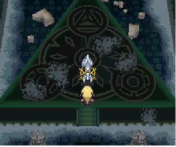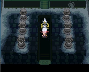 아르세우스를 선두에 세우고 알프의 유적의 관리사무소 앞으로 가 줍니다.