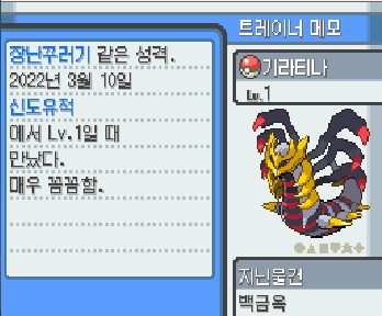 원래는 기라티나, 디아루가, 펄기아 중 한 마리만 받을 수 있습니다.