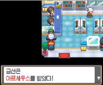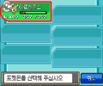 아까 이벤트를 사용했던 아르세우스를 집어넣고, 다시 사용하지 않은 아르세우스를 꺼내줍니다.