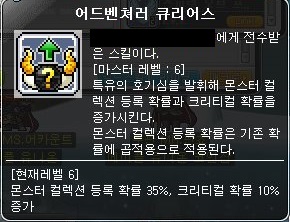 모험가 궁수의 링크 스킬입니다. 크리티컬 확률을 10% 올려줍니다.