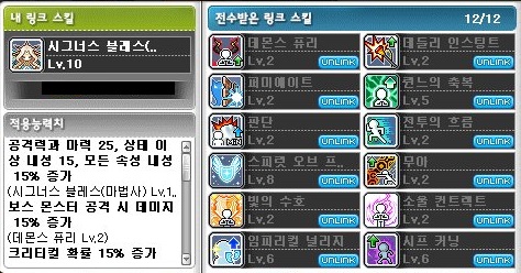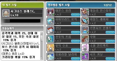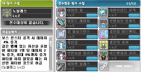 직업과 스탯 상황에 맞춰 12종의 링크 스킬을 잘 조합해 사용하시면 되겠습니다.