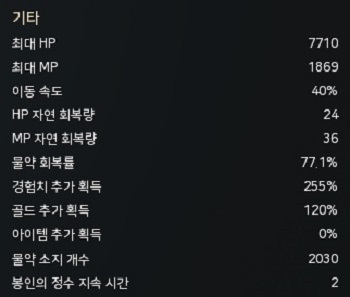 치유량은 프리스트 직업군에게만 적용됩니다.