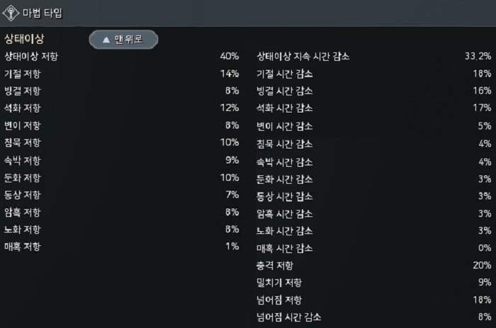 5) 상태이상 적중, 상태이상 저항, 상태이상 지속시간 감소