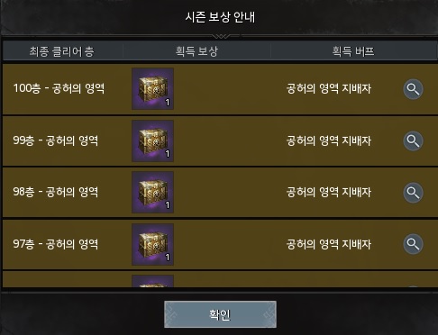 시즌 보상은 매 시즌 최종 도달 층수에 따라 보상을 받습니다.