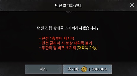 골드를 소모해 던전을 초기화할 수 있습니다.