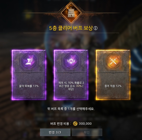 일반, 영웅, 전설 등급이 있으며, 30만골드로 갱신할 수 있습니다.