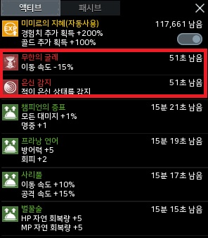 데미지 감소류, 데미지류, 물약 회복률 버프가 좋은 것 같습니다.