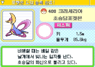 말을 걸면 크리세리아가 도감에 등록되며, 크리세리아는 도망칩니다.
