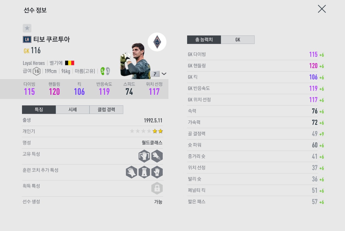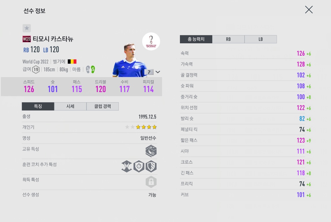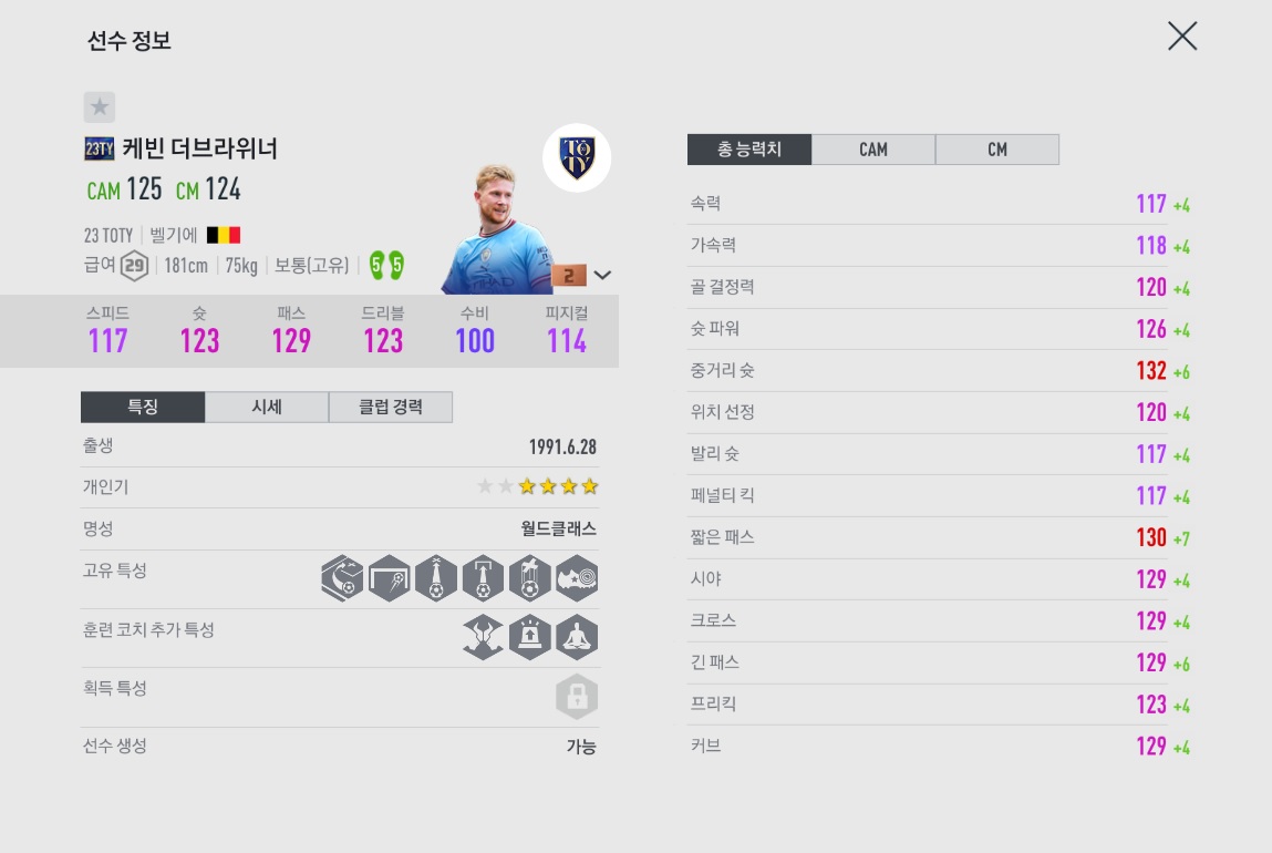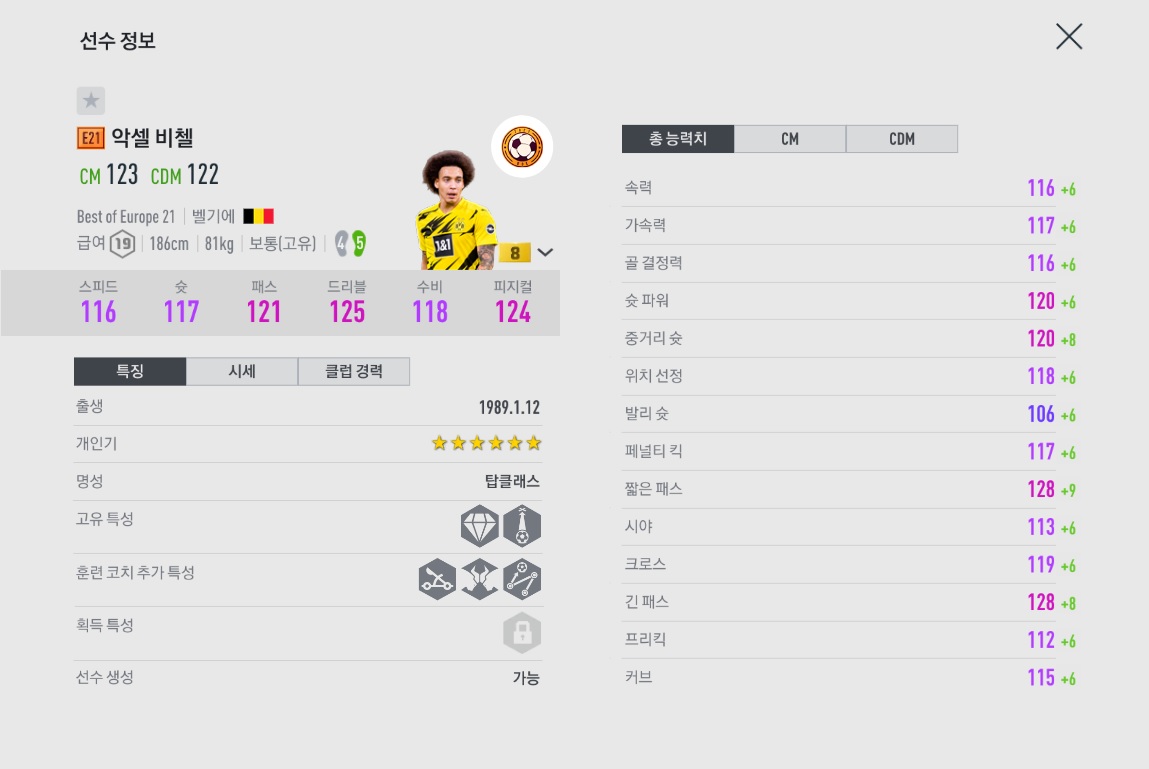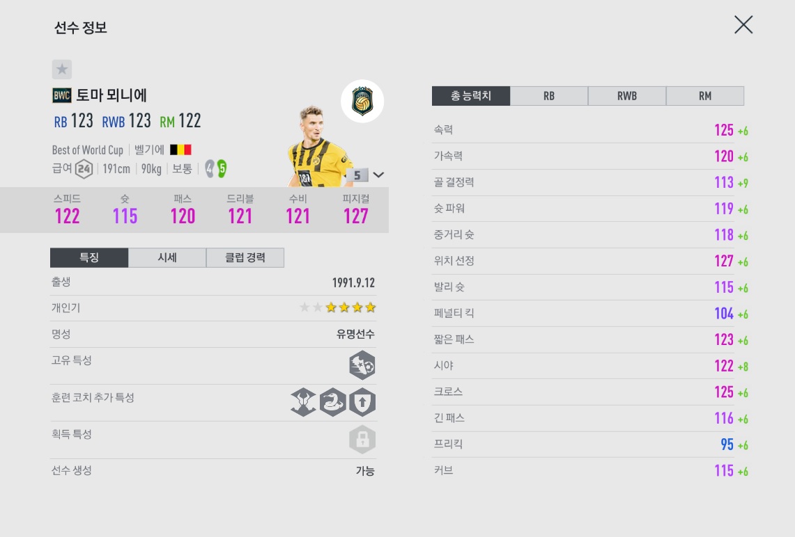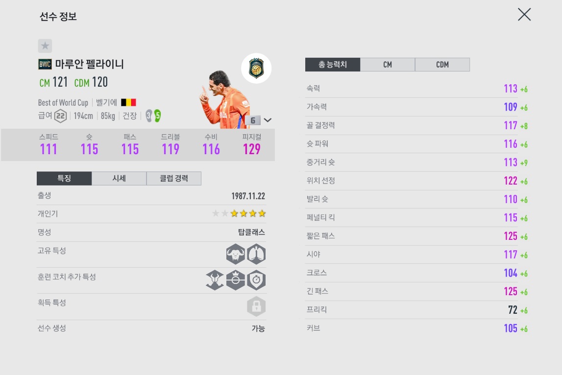 아주 좋은 수비 능력치에, 공격도 조금은 되는 좋은 선수입니다.