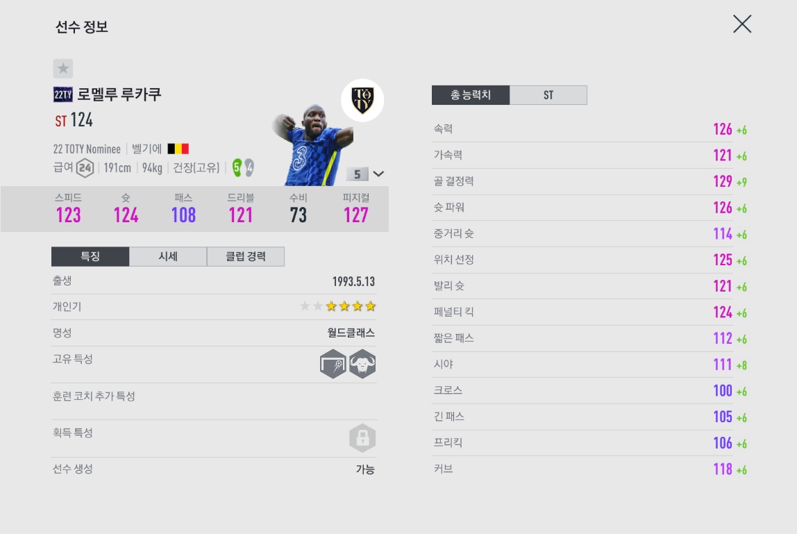 20 TOTS 루카쿠는 당시에 잘 사용했었던 것 같습니다.
