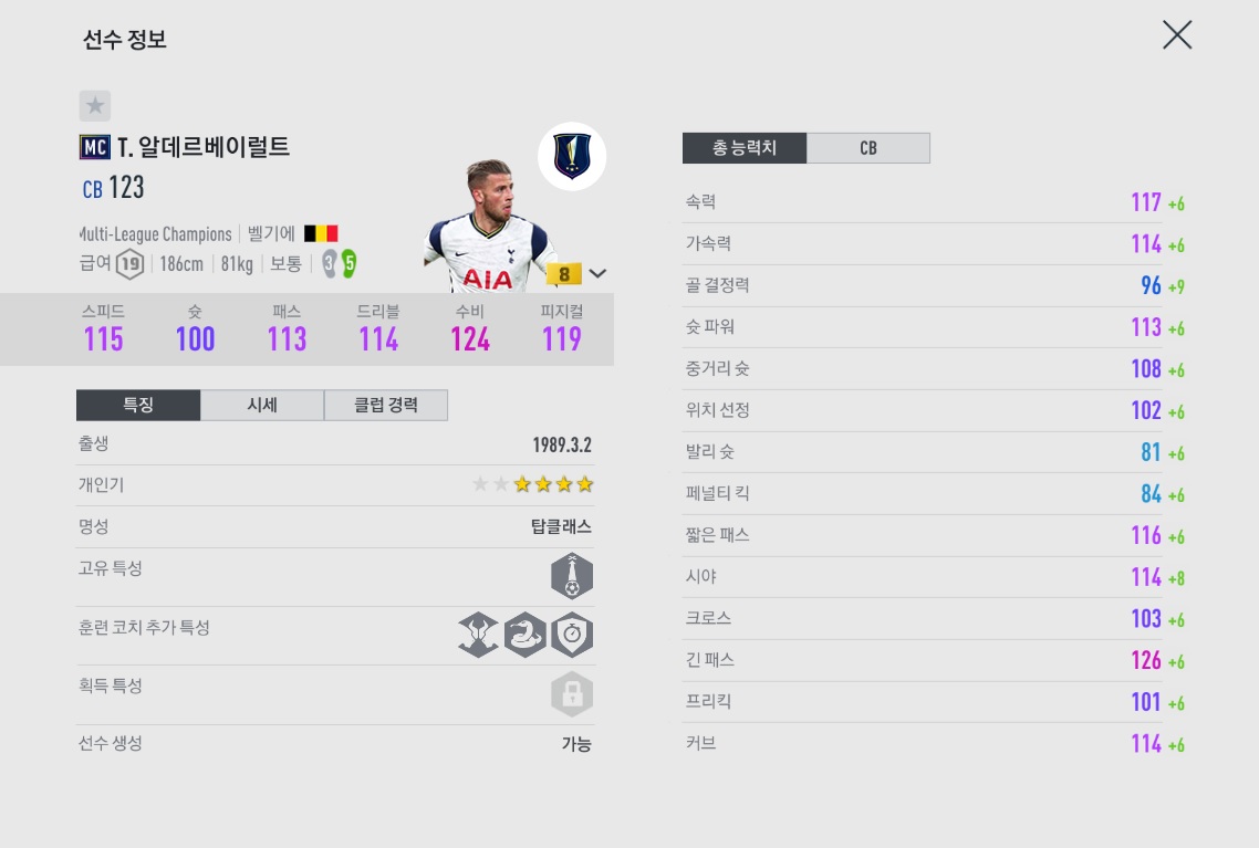 좋은 피지컬과 수비 AI를 가진 센터백입니다.