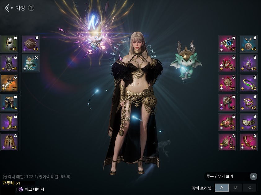 안녕하세요 areviewer입니다. 전투력 6만을 달성해 점검 및 목표설정 겸 포스팅을 작성하게 되었습니다. 1. 장비 아이템, 캐시 악세서리 무기 : 발뭉 마법구 9강 / 공격력 4 방어구 니다벨리르의 운명