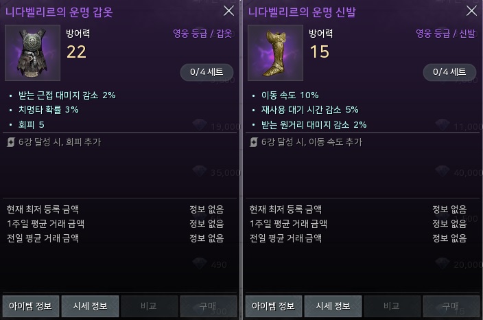 *니다벨리르 세트는 신발 + 갑옷 기준입니다.*