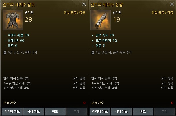 알브의 세계수 갑옷과 장갑은 상당히 괜찮은 선택지입니다.
