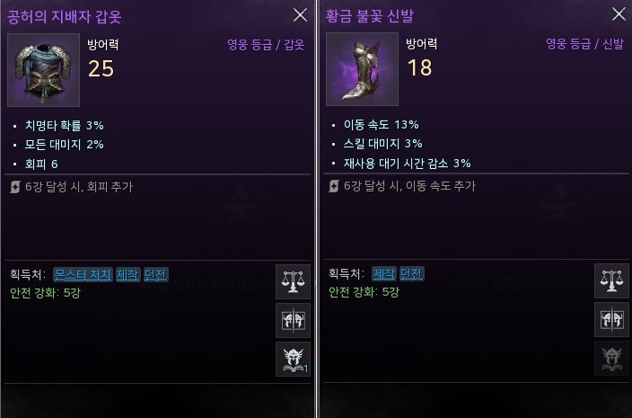 신발, 장갑의 강화 단계는 크게 신경쓰지 않으셔도 되겠습니다.