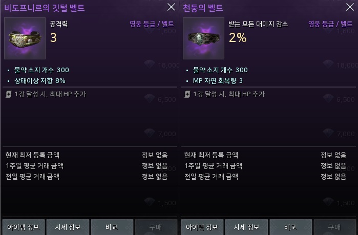 마나가 부족한 직업군이라면 천둥의 벨트가 더 나을 수도 있습니다.