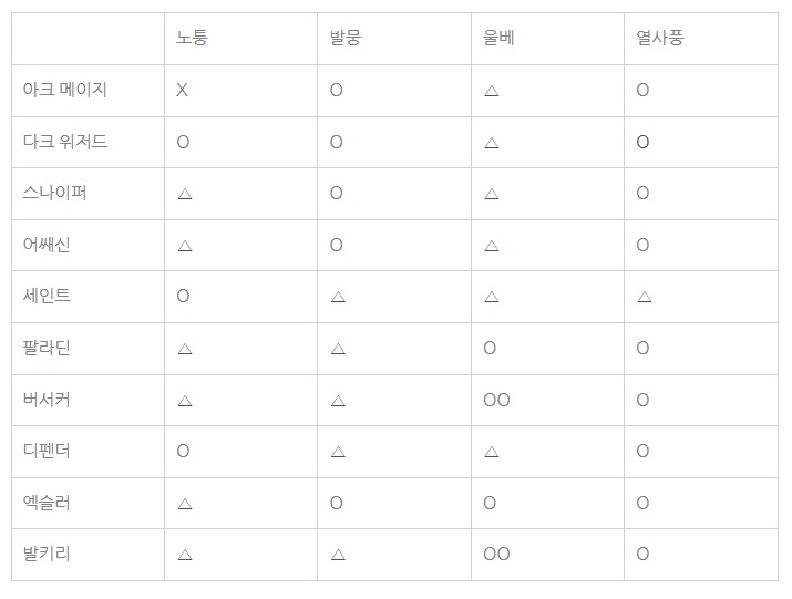 버서커와 발키리는 넘어짐 스킬이 있어 울베를 많이 사용하시는 듯 합니다.
