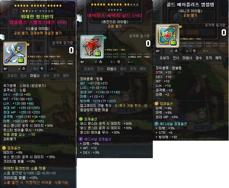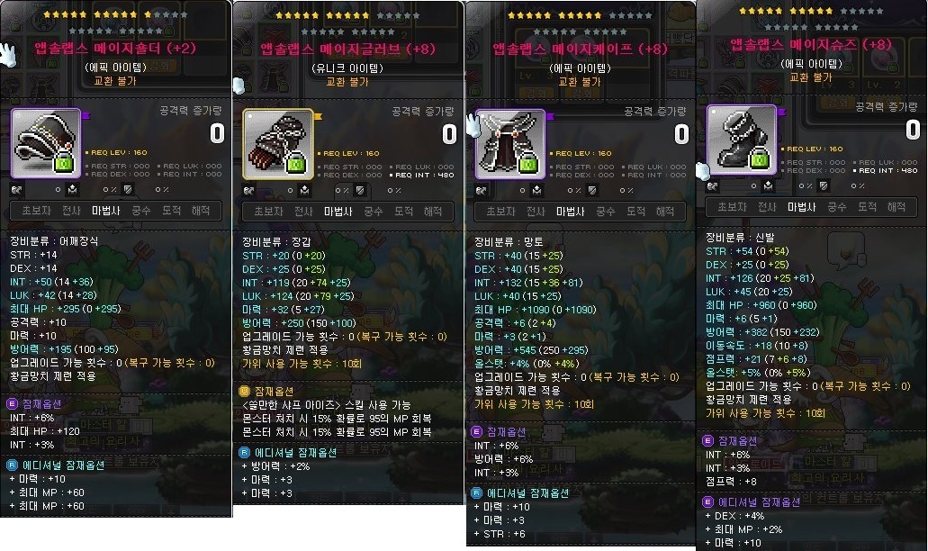 (추옵 70급에 주스탯 9%면 충분합니다. 에디는 장갑과 신발만 달아주시면 되겠습니다.)