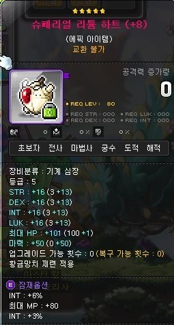추옵 60~70급에 주스탯 9%, 에디 1줄이면 충분합니다.