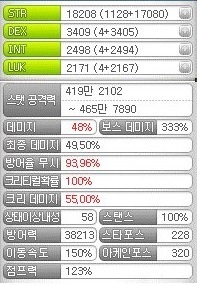 현재는 심볼 강화, 스타포스를 완료하여 주스탯 2만 정도가 나옵니다.