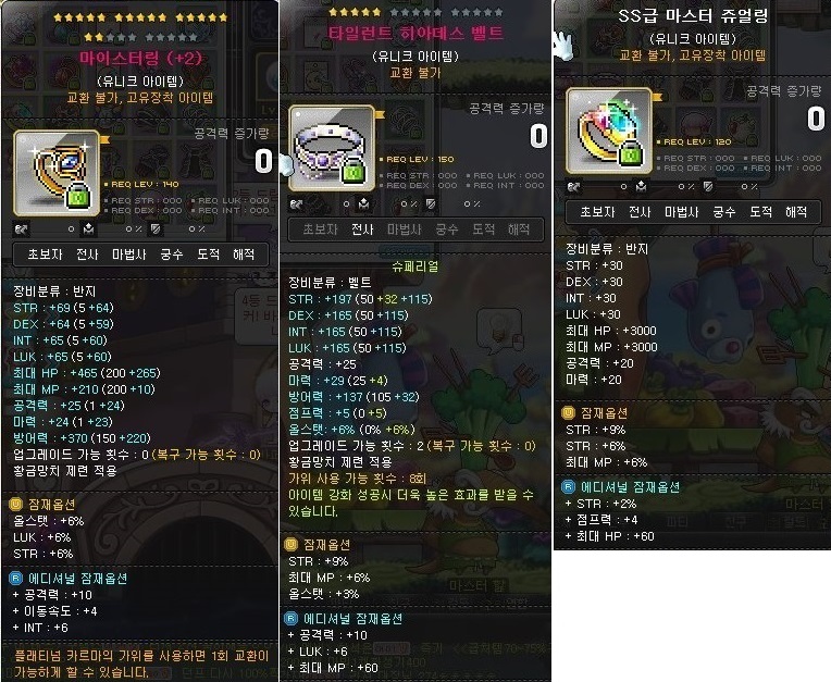 *235레벨, 직업에 따라서는 250레벨까지도 사용할 수 있는 템셋팅입니다.*