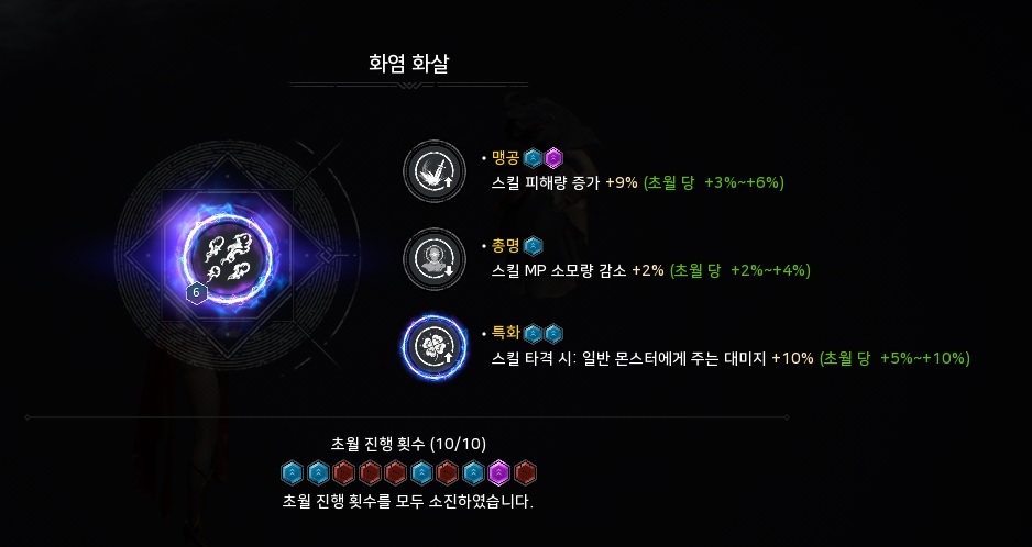스킬 초월은 10강 이상의 일반 ~ 희귀 스킬을 초월해 부가 스탯을 받는 시스템입니다.