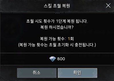 다이아를 소모해 초월을 10회 중 1회 복원할 수 있습니다.