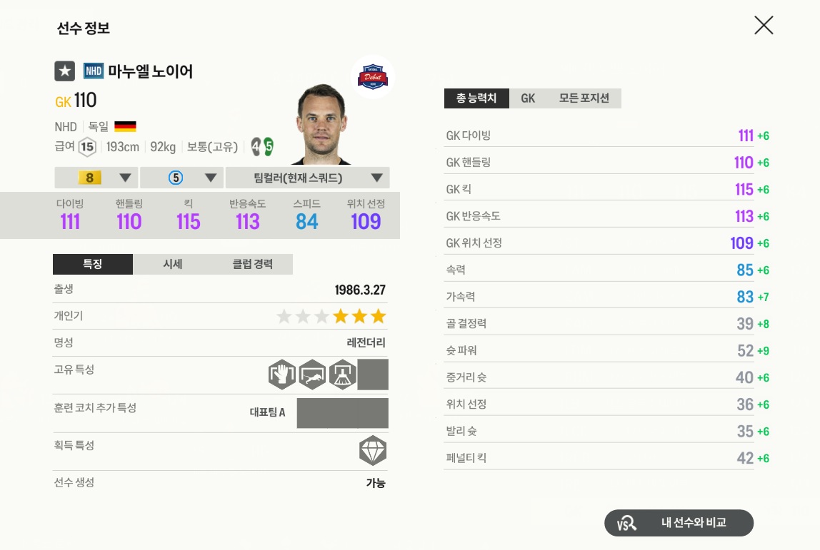 (코어 스탯이 113~115 선수의 평균을 훨씬 상회합니다.)