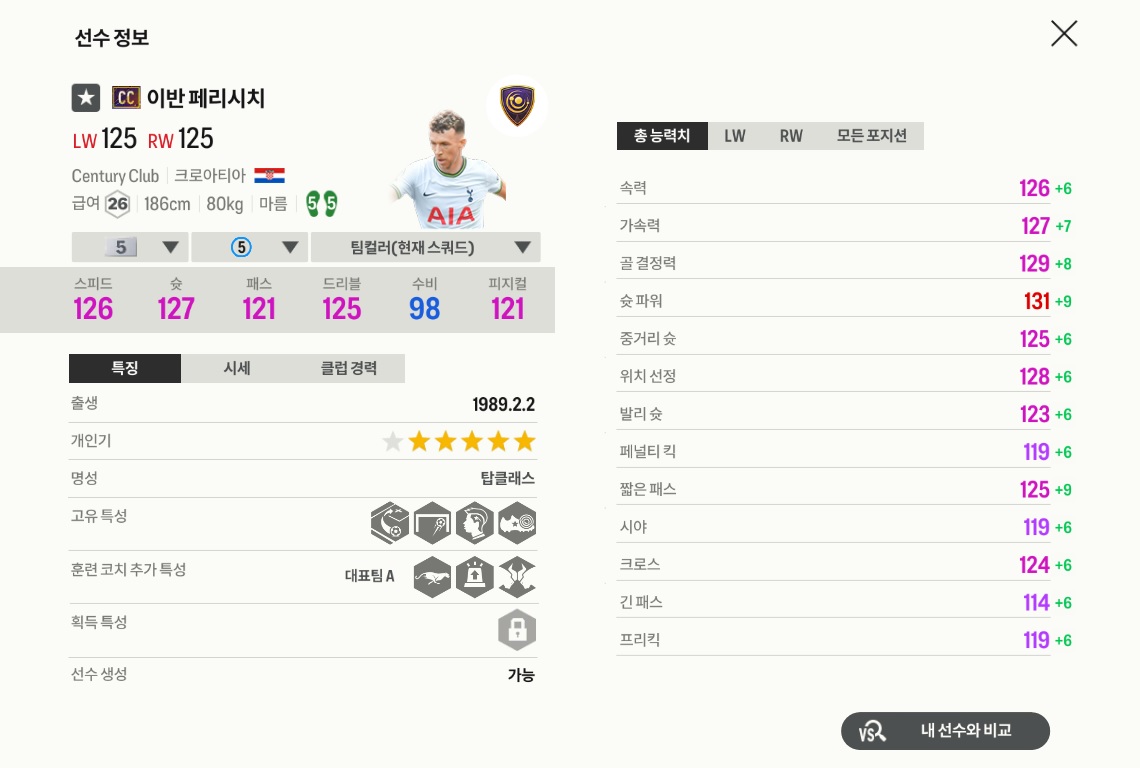 FC 온라인 페리시치는 윙, 공미, 톱에서 완성형 선수 중 한명입니다.
