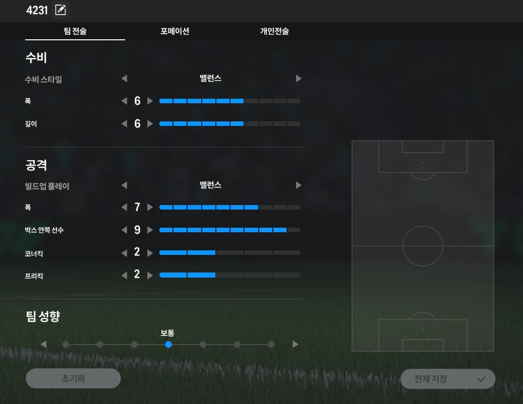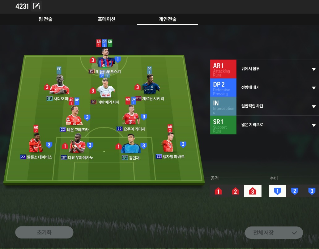 4231 포메이션의 팀전술과 개인전술을 사용하고 있습니다.