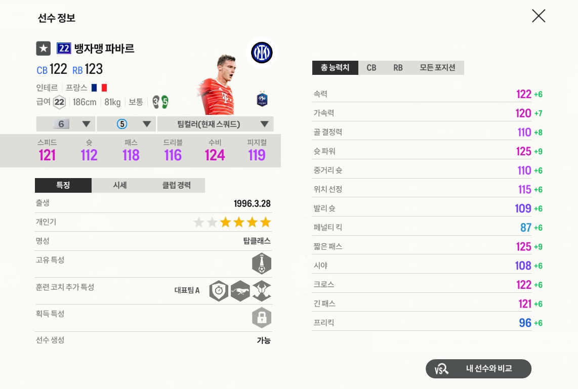 그런데 22급여 이상을 사용하자 수비 AI까지 탑재되어 육각형 풀백이 되었습니다.
