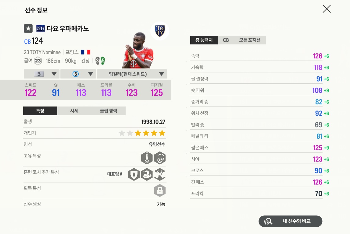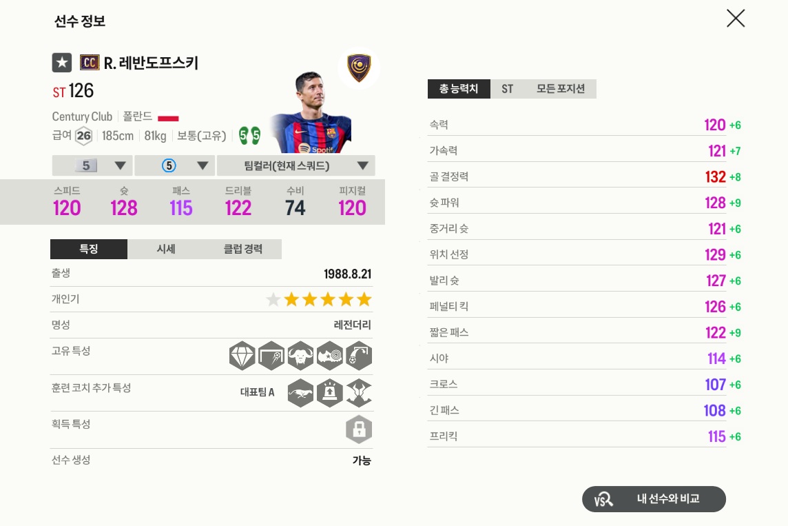 6강으로 업그레이드 하자 몸싸움과 슈팅 능력이 확실히 더 좋아졌습니다.