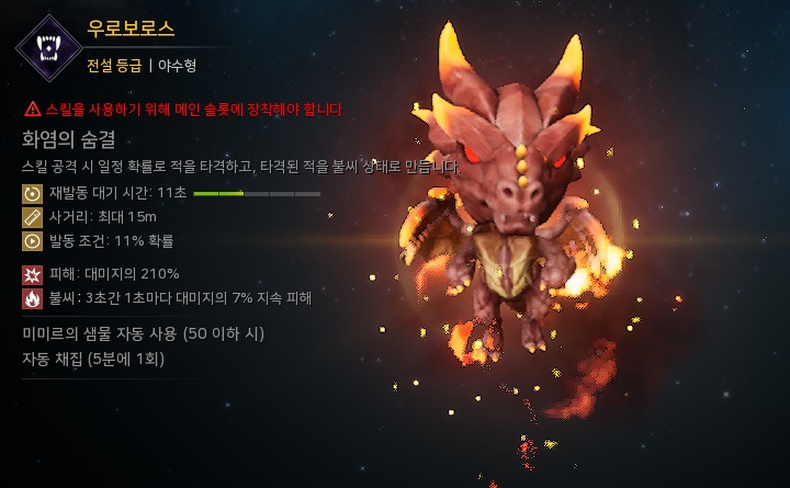전설 등급부터의 펫은 고유 스킬을 가지고 있습니다.
