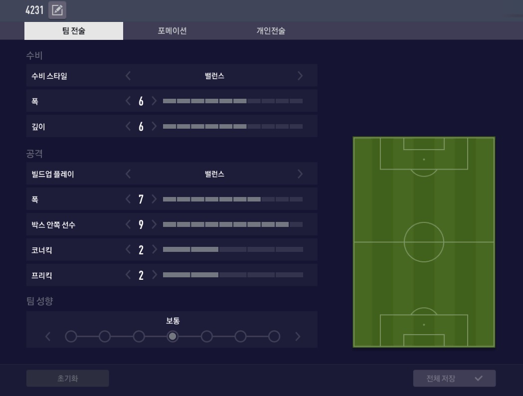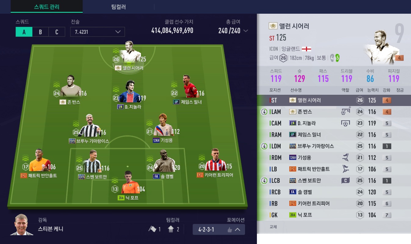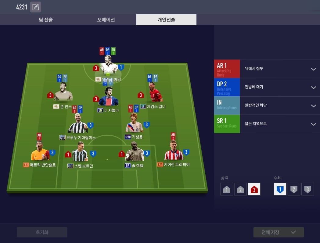 본캐에서 사용하던 4231 포메이션을 계속 사용중입니다.