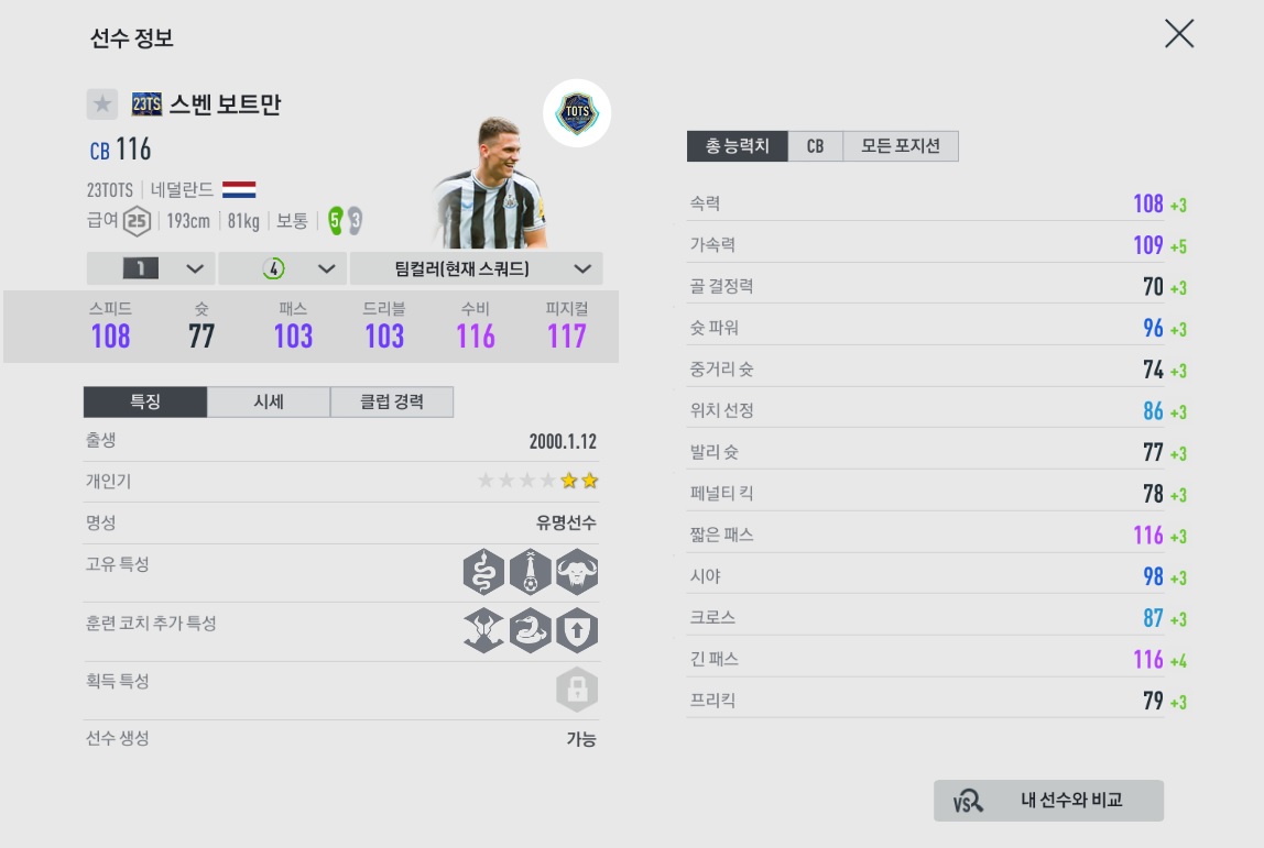 쓸만한 선수를 찾다 스탯이 괜찮아보여 구매했습니다.