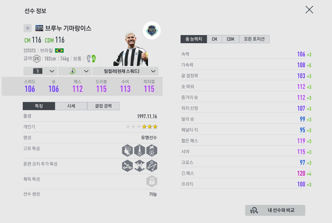 크로스 스탯도 높아 종종 공격을 가기에도 아주 좋습니다.