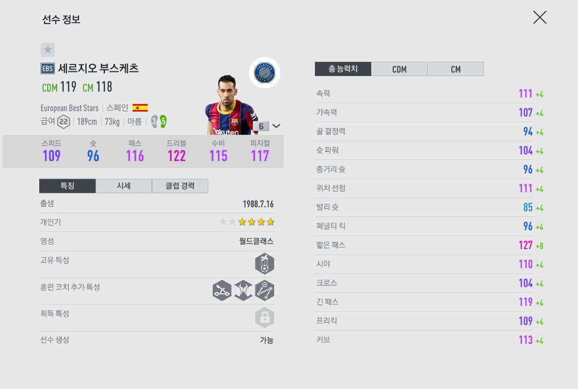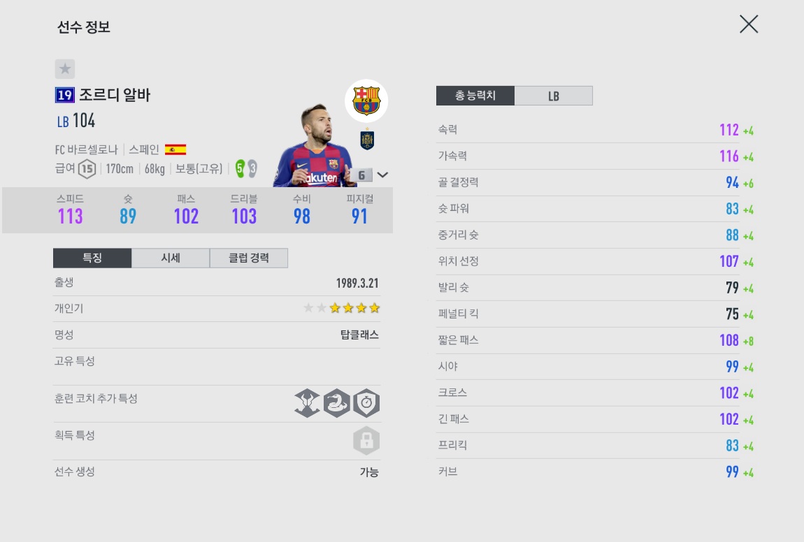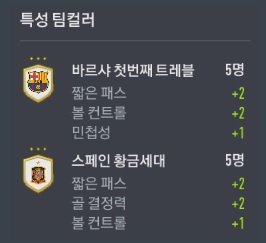 조르디 알바를 제외하고는 전부 특성 팀컬러를 받습니다.