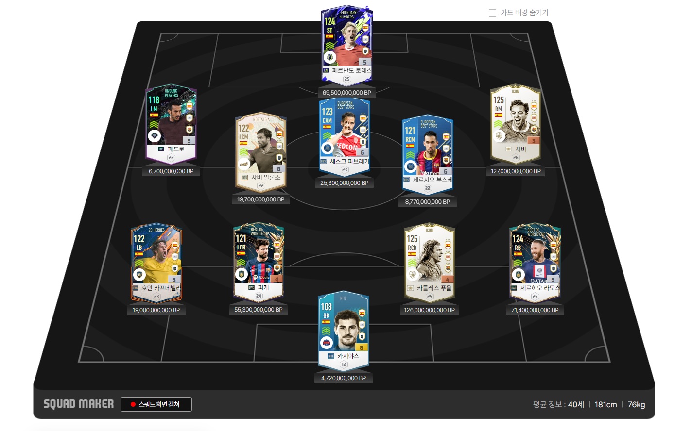 (아이콘 가격이 올랐고, 풀백과 토레스를 업그레이드 했습니다.)