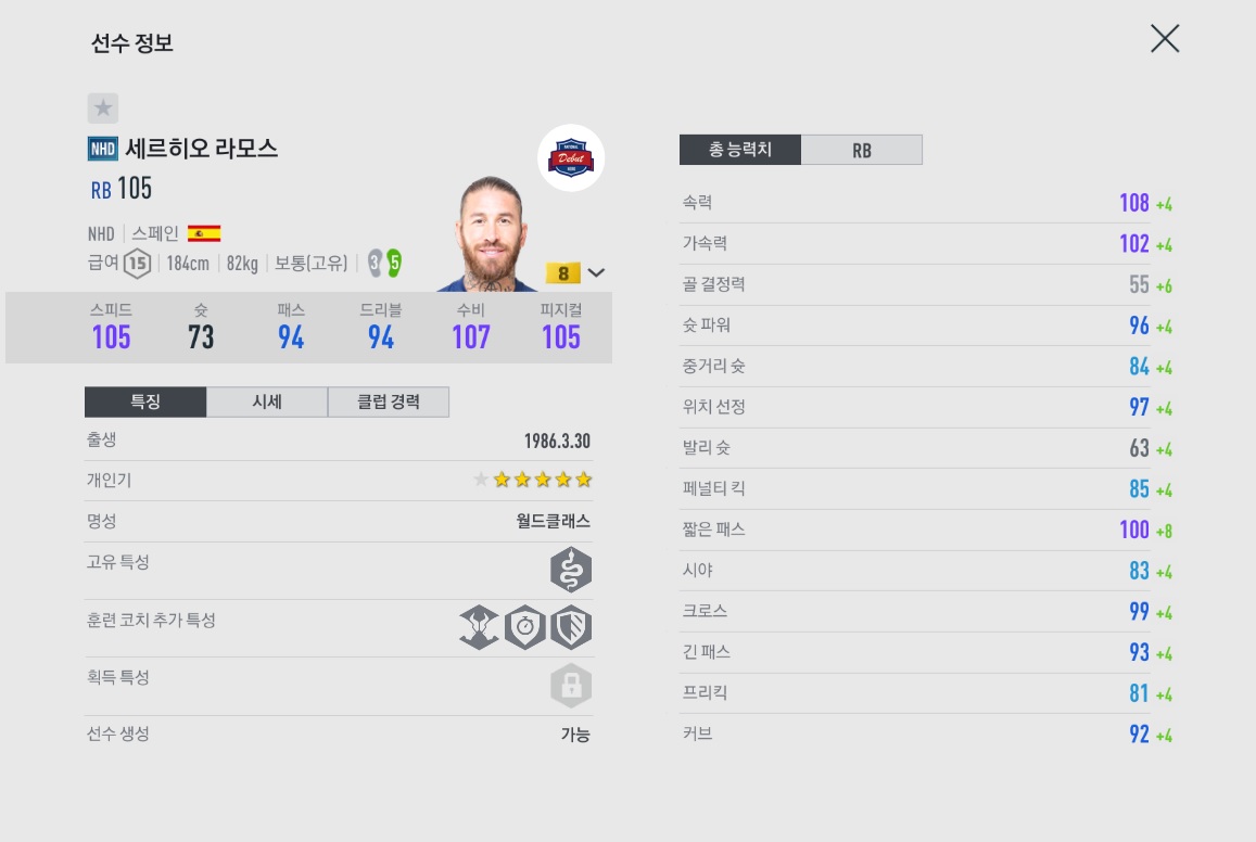 준수한 속도와 피지컬, 아주 좋은 AI를 가지고 있습니다.