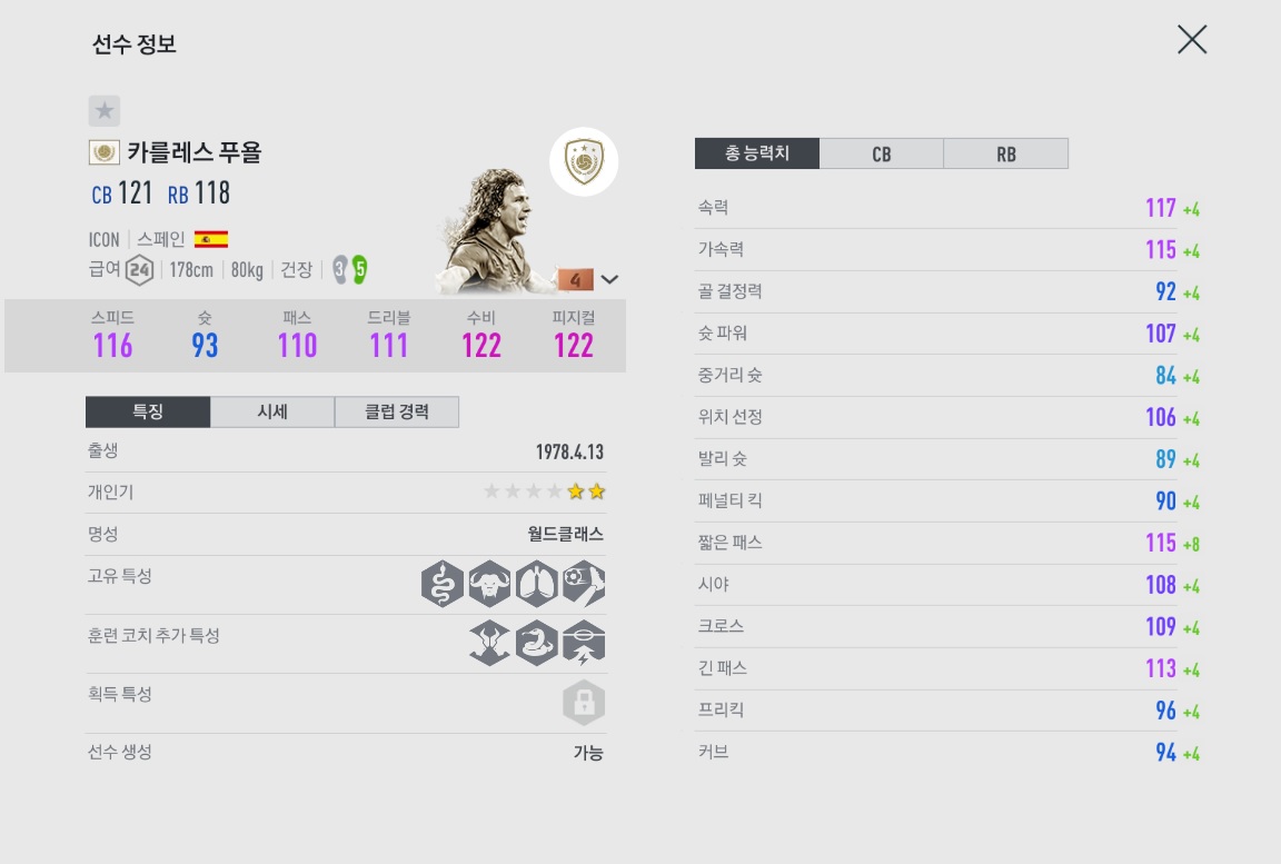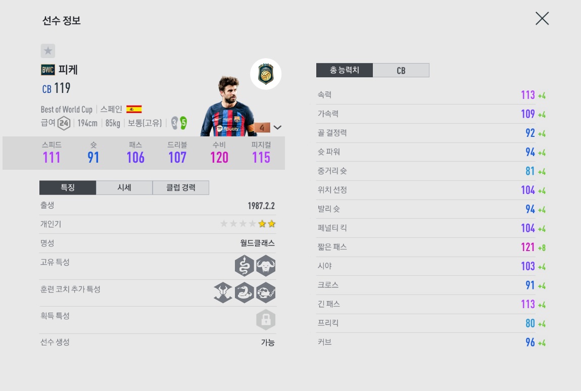 좋은 피지컬과 수비 AI, 수비 능력을 가지고 있습니다.
