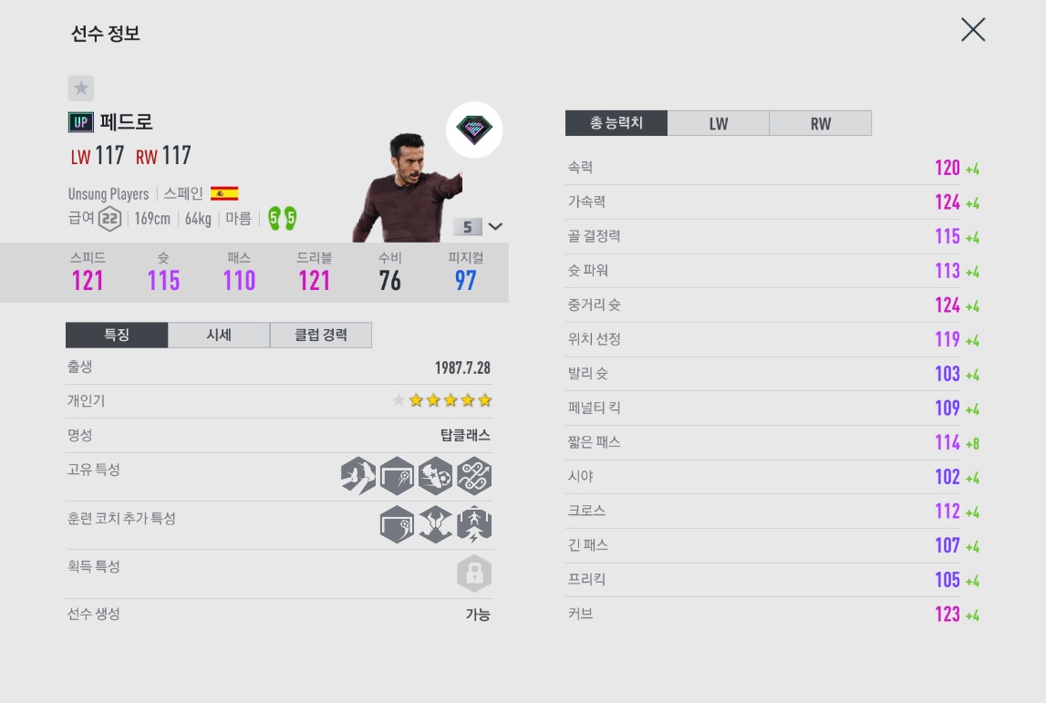 중앙에는 무리겠지만, 윙쪽에 배치한다면 스탯값은 충분히 해 주는 듯 합니다.
