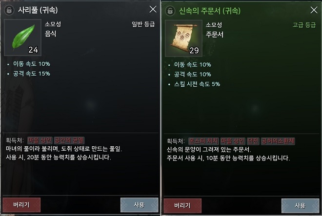 사리풀과 신속의 주문서로 이동속도를 각각 10%씩 챙길 수 있습니다.