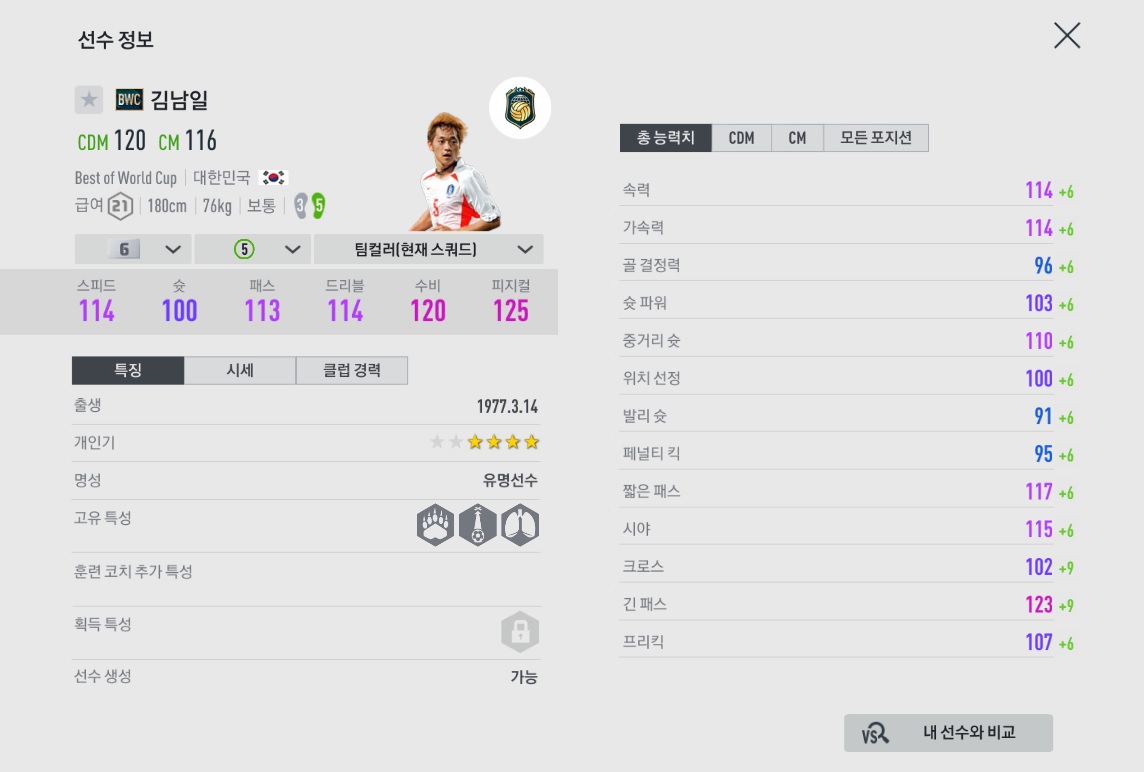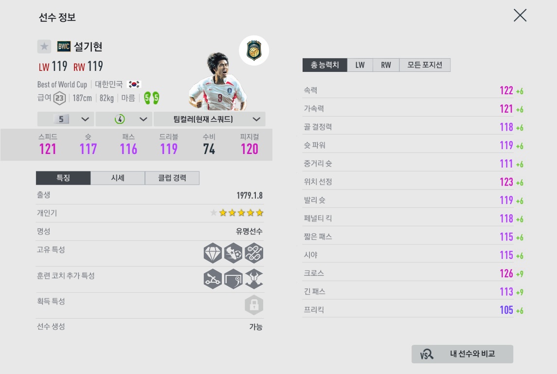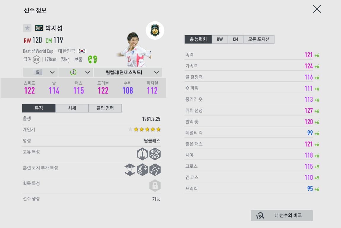 좋은 체감과 준수한 밸런스와 몸싸움을 가지고 있습니다.