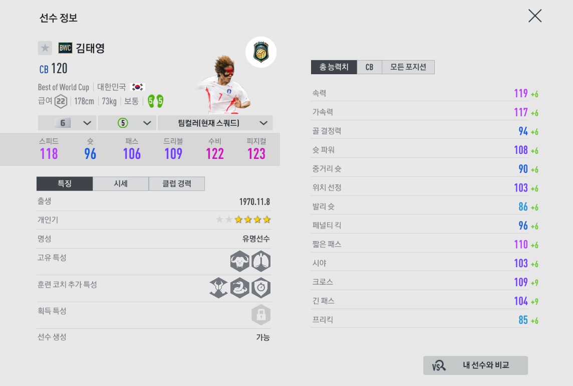 이영표보다 피지컬과 수비적인 능력이 좋은 윙백입니다.