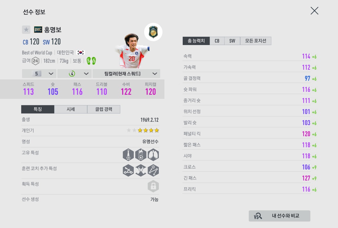 홍명보와 최진철의 느린 속도를 보완하기 최적화되어 있습니다.